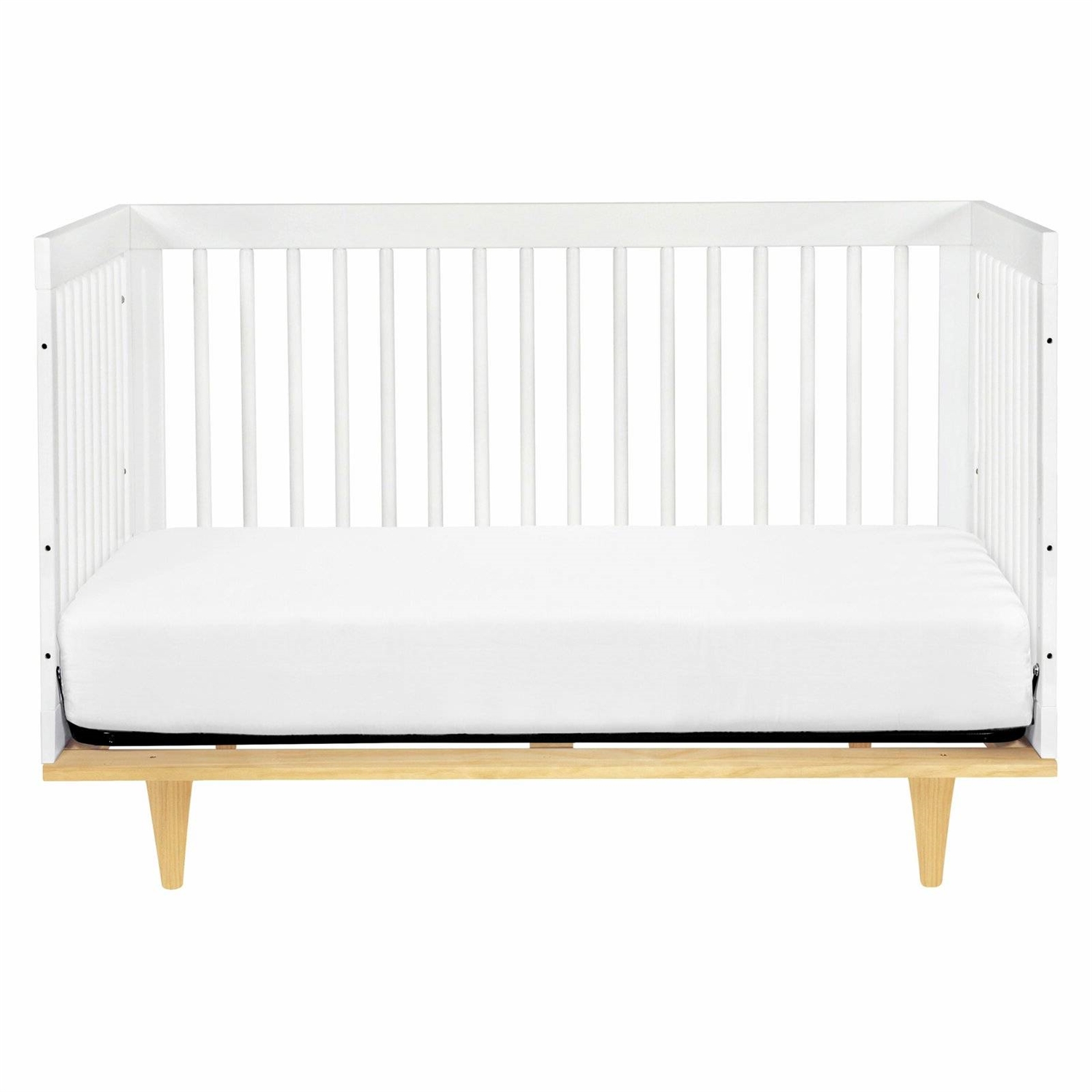 Modern Classic Solid Wooden Crib in White with Natural Wood Legs