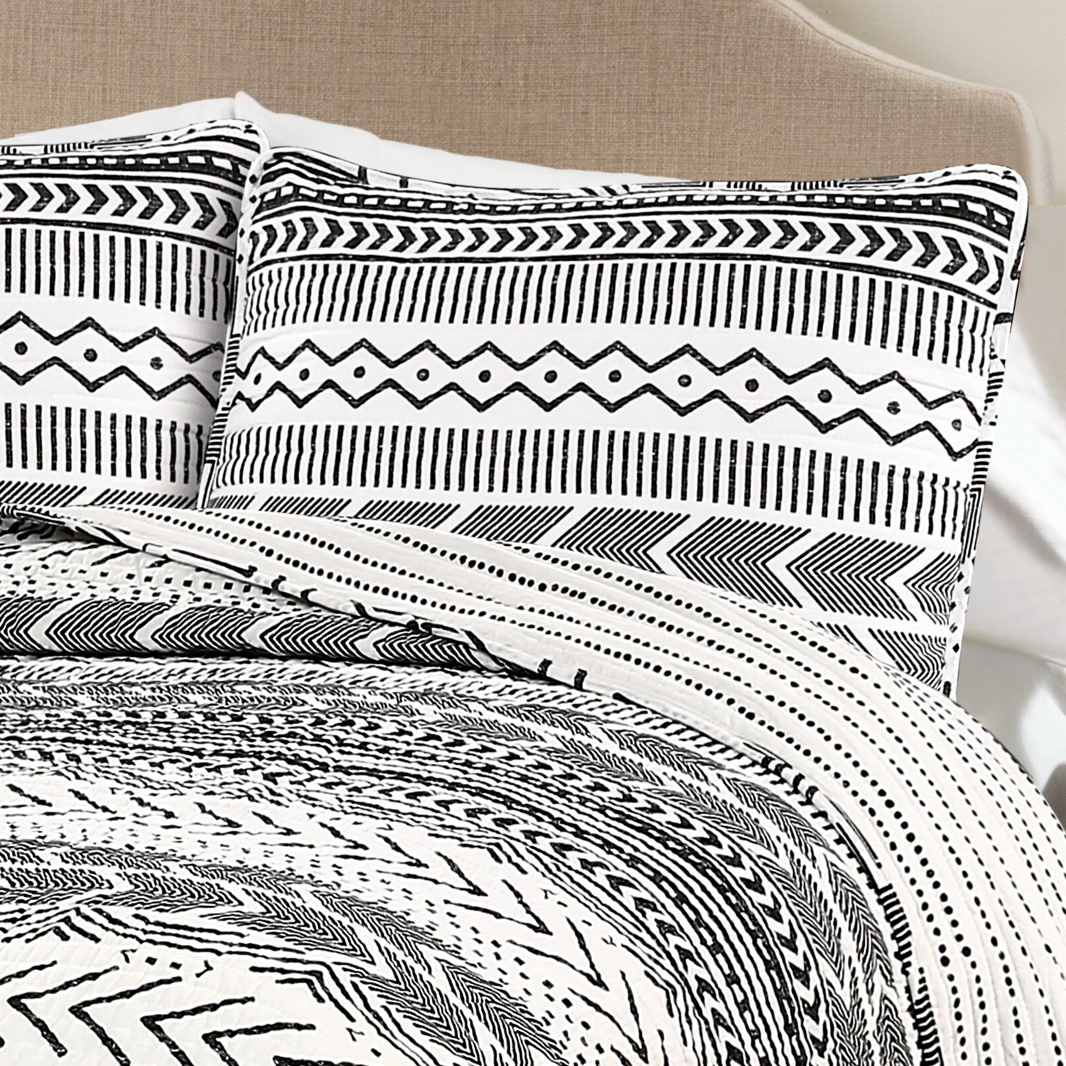 Home > King 3 Piece Scandinavian Style Chevron Black White Reversible Cotton Quilt Set