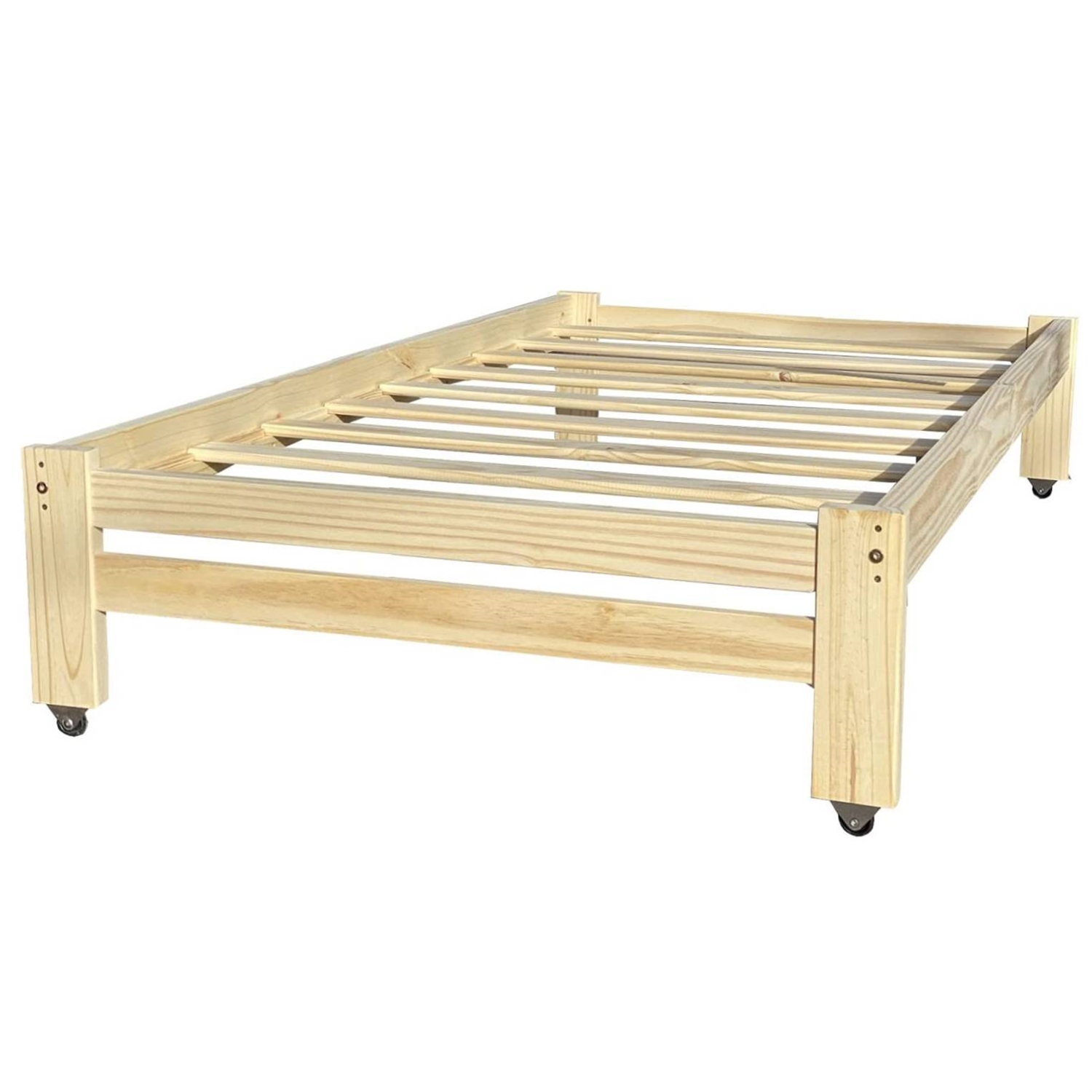 Home > Twin Unfinished Solid Wood Platform Bed Frame with Casters Wheels