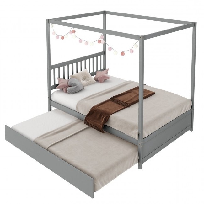 Gray Full Size Canopy Platform Bed with Twin Roller Trundle Bed Gray Full Size Canopy Platform Bed with Twin Roller Trundle Bed Gray Full Size Canopy Platform Bed with Twin Roller Trundle Bed Gray Full Size Canopy Platform Bed with Twin Roller Trundle Bed
