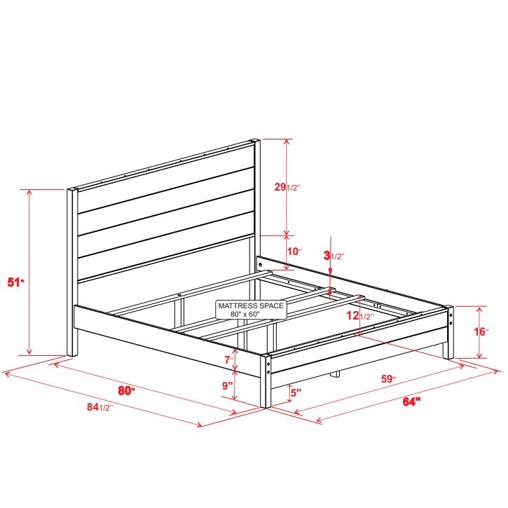 FarmHome Rustic Solid Pine Platform Bed in Queen Size